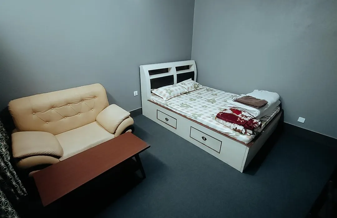 To ensure your comfort, a separate toilet are provided at this apartment. Moreover, there are towels and slippers as well.